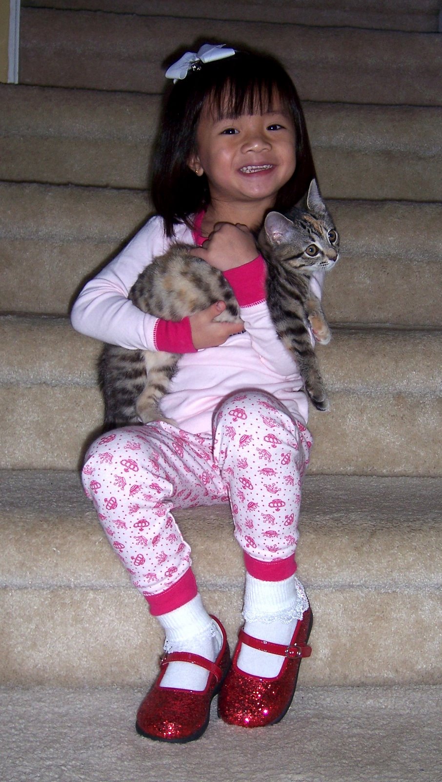 "The Princess" in her red shoes. What do you think was the first thing that she put on this morning. You guessed it. She loves the shoes.